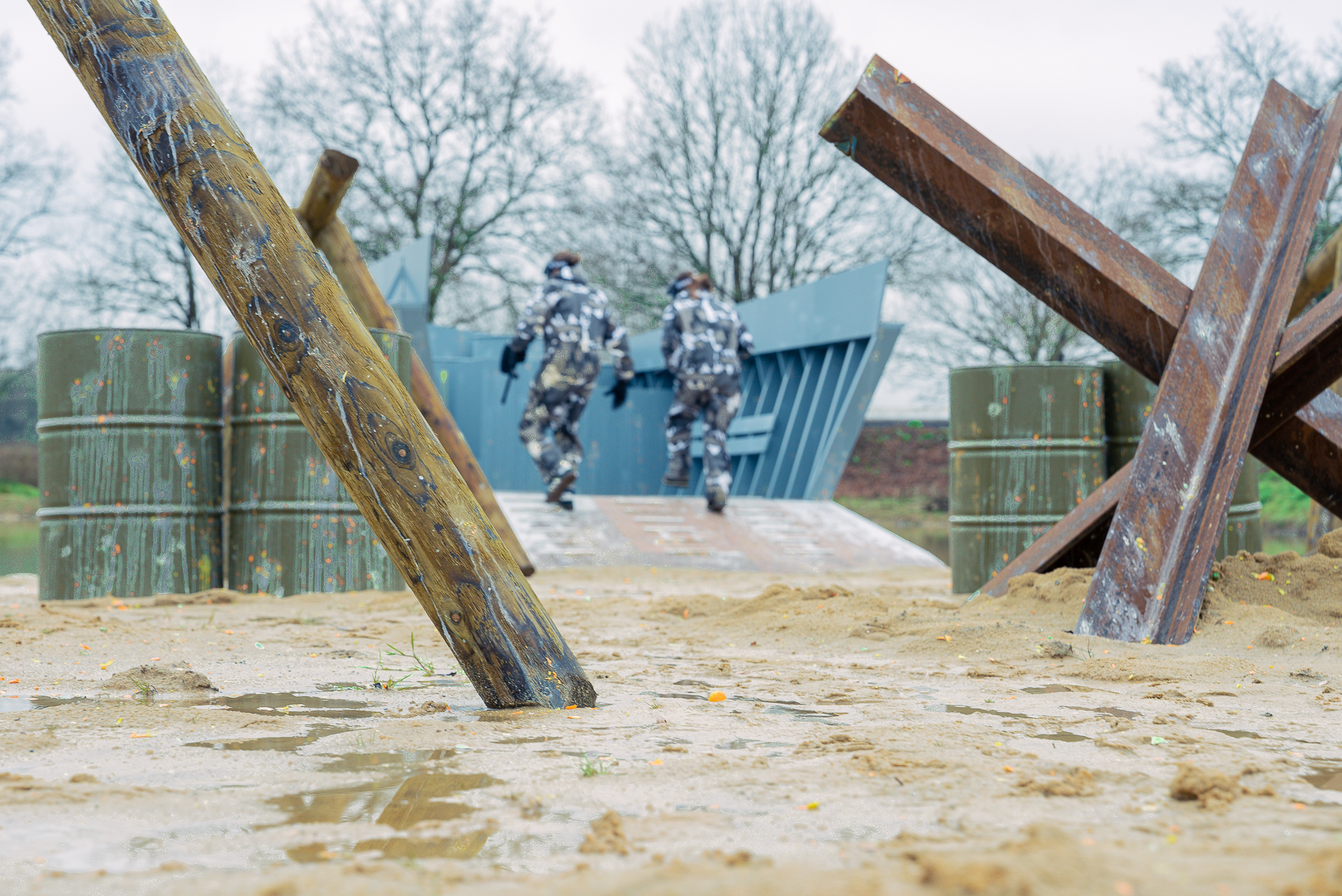 Chez Nantes Aventures, nous vous proposons un décor immersif façon plage du débarquement de 1944.